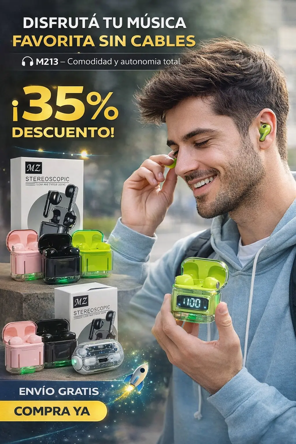 Viví tu música como nunca antes con los MZ13, los auriculares inalámbricos pensados para acompañarte en cada momento del día. Combinan comodidad, estilo y rendimiento para que disfrutes sin interrupciones.